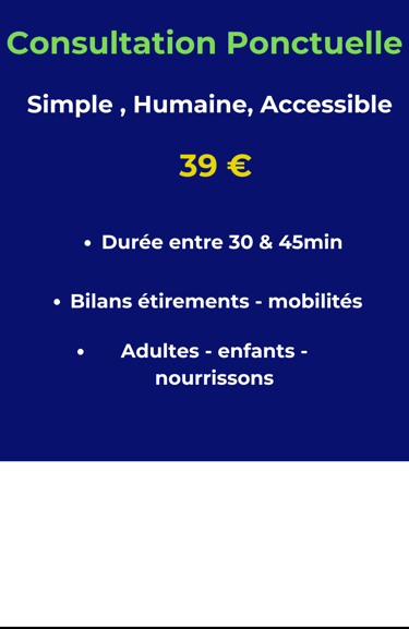 ⚪ Consultation ponctuelle – Je viens sans abonnement Vous préférez une séance unique sans formule ? C’est possible !