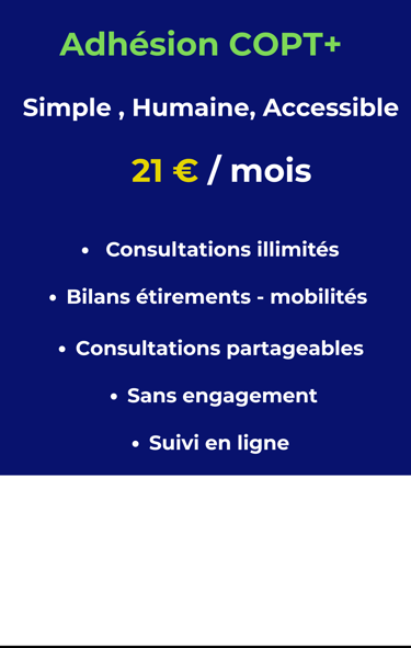 📌 Bilans Mobilité & Étirements illimités 📌 Suivi en ligne avec un ostéopathe dédié